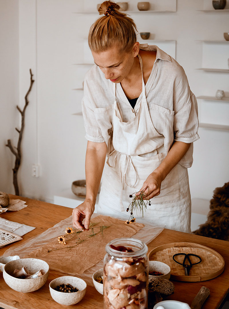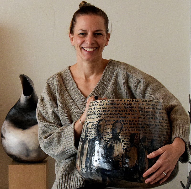 wieder der Großstadt zu entfliehen. Dann fanden wir durch Zufall dieses Haus und verliebten uns sofort darin“, berichtet die 43-Jährige. Dort fing sie während der Coronazeit an, sich intensiver mit der Keramik zu beschäftigen. Dabei traf sie auf eine Künstlerin aus Groß Eichholz, an deren Seite sie zwei Jahre lang das Handwerk erlernte und wobei sie ihren persönlichen Stil fand.